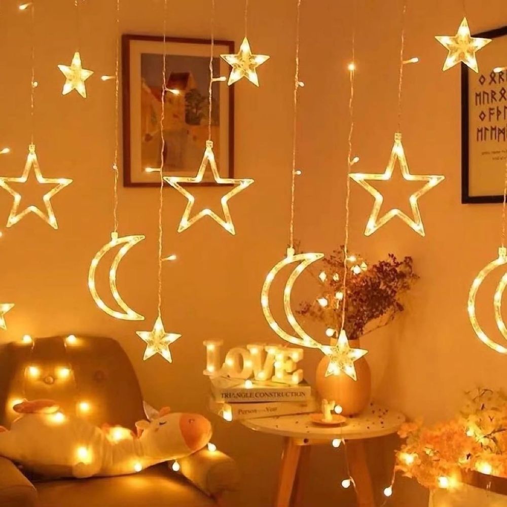 7) Dekoratif Ay–Yıldız Saçak Perde LED (Gün Işığı)